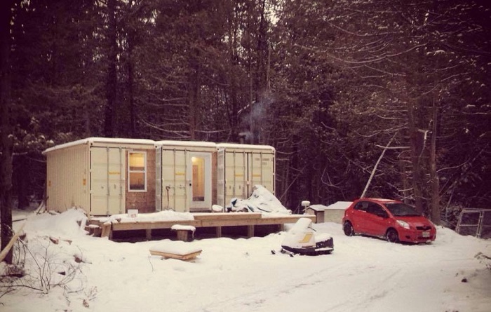 32-летний канадец Joseph Dupuis построил для себя полноценный энергосберегающий дом из трех контейнеров для перевозки грузов. Электричество он получает за счет установленных на крыше солнечных панелей. Если верить словам хозяина, то из коммунальных платежей самые большие счета приходят за телефонные разговоры.